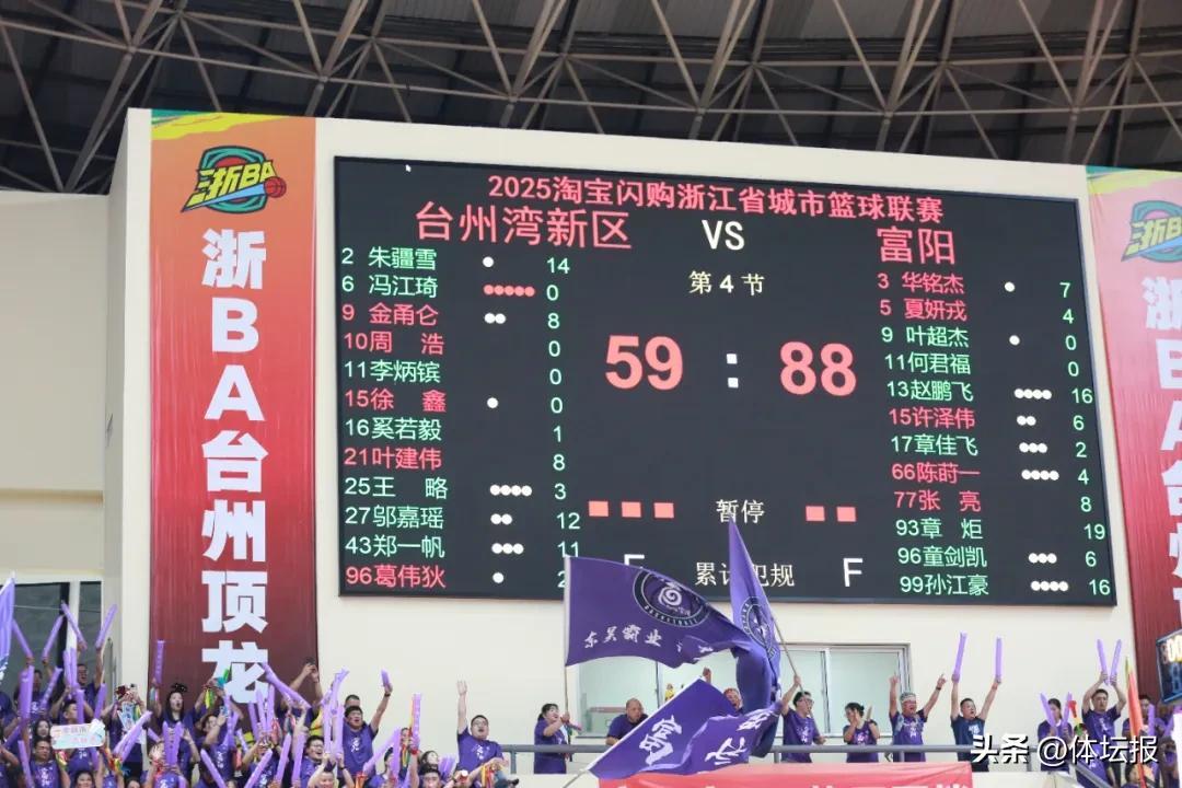 10月17日晚,“浙BA”城市爭霸賽B組第十輪,台州灣新區隊主場對陣富陽隊。最終富陽隊以88:59獲勝!