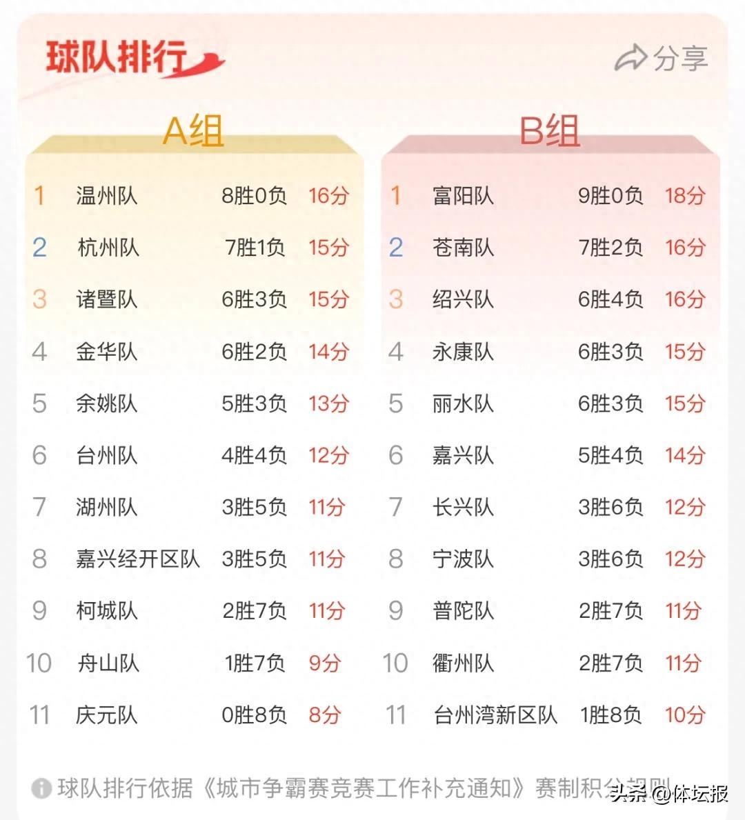 浙BA | 溫州九連勝!舟山、湖州勝!