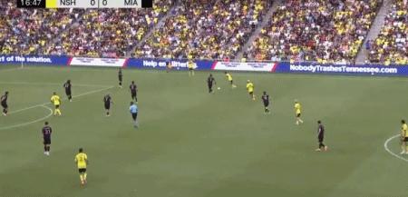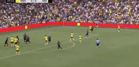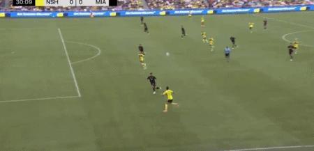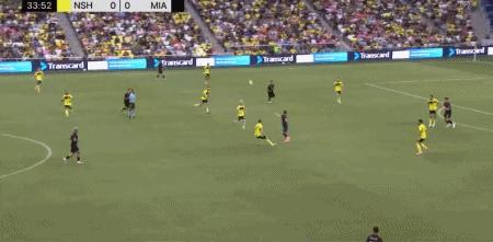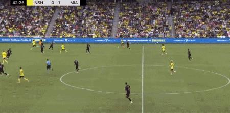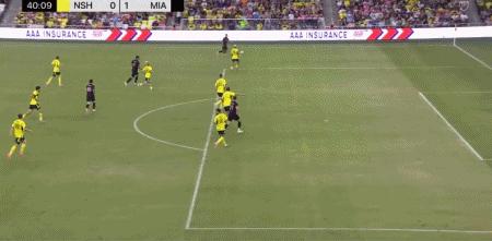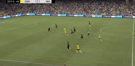 第43分鐘,底線傳中,瑟裏奇頭球破門扳平比分,納什維爾1-1邁阿密