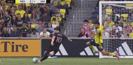第35分鐘,梅西胸停轉身突破,弧頂處起腳勁射破門,邁阿密1-0納什維爾