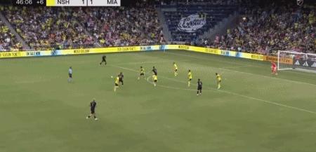 第45+6分鐘,沙費爾伯格補射破門將比分反超,納什維爾2-1邁阿密
