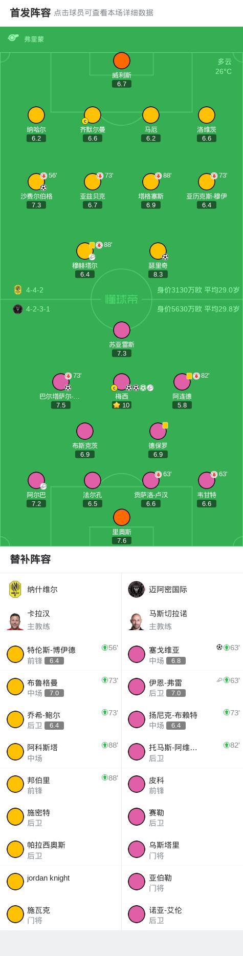第67分鐘,巴爾塔薩爾-羅德里格斯補射破門,邁阿密3-2納什維爾