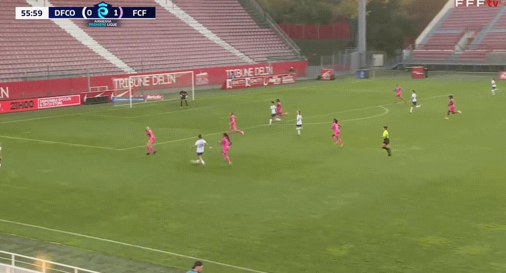 北京時間10月18日,法女甲第5輪,第戎女足主場1-1戰平弗勒裏91女足。比賽當中,中國球員王妍雯打進一球。