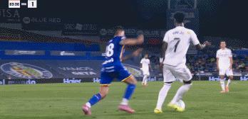 第55分鐘,維尼修斯換下馬斯坦託諾。第77分鐘,赫塔費隊剛剛替補出場1分鐘的恩約姆將準備前插的維尼修斯干倒,被主裁判直接出示紅牌罰下!