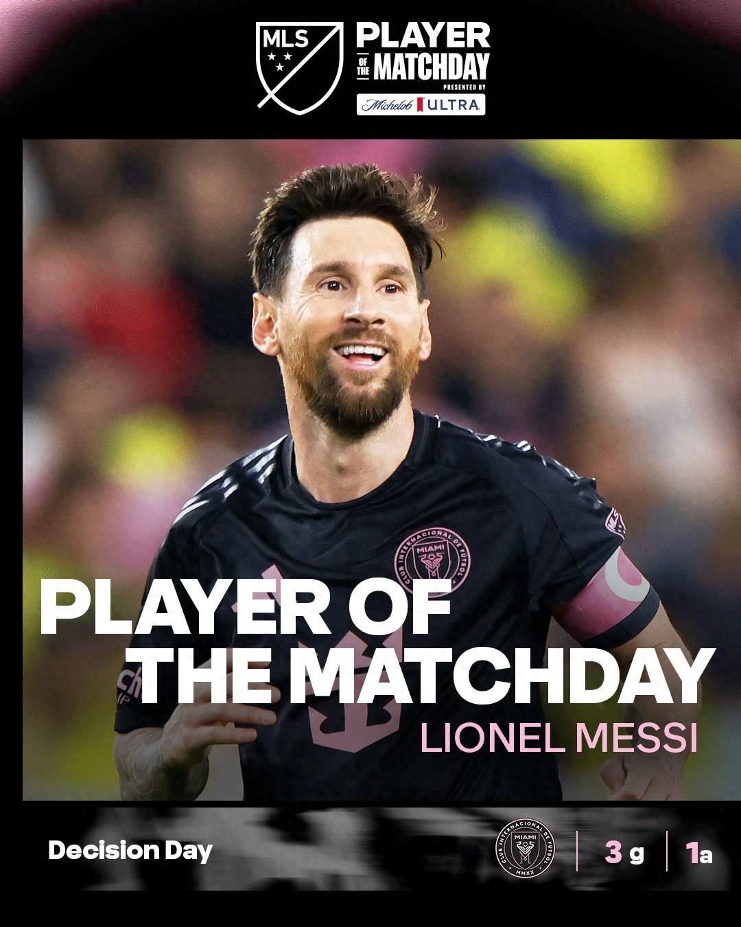據美職聯官方消息,3球1助的梅西當選了美職聯最後一個比賽日的最佳球員,據統計,這是他連續第六次榮獲美職聯比賽日最佳球員。