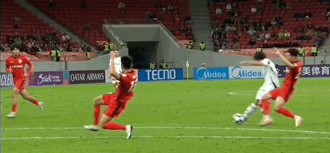 第25分鐘,相馬勇紀禁區弧頂處破門,上海海港0-2落後!