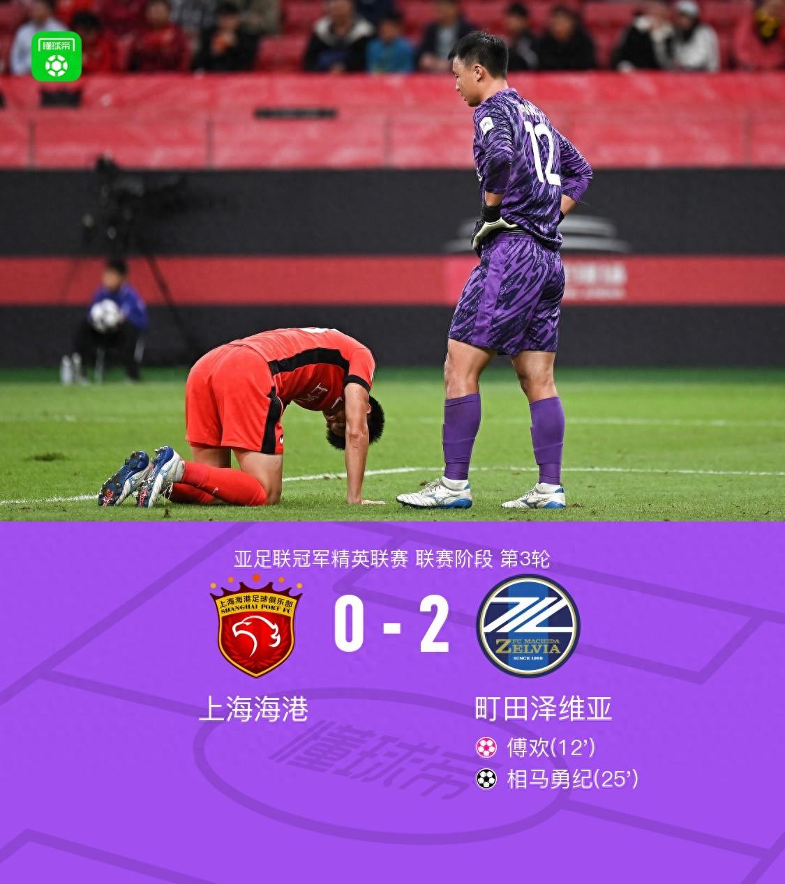 北京時間10月21日亞足聯冠軍精英聯賽 聯賽階段 第3輪,上海海港對陣町田澤維亞。上半場傅歡自擺烏龍,相馬勇紀遠射破門,下半場相馬勇紀再入一球越位在先被吹無效。最終比分上海海港 0-2 町田澤維亞。