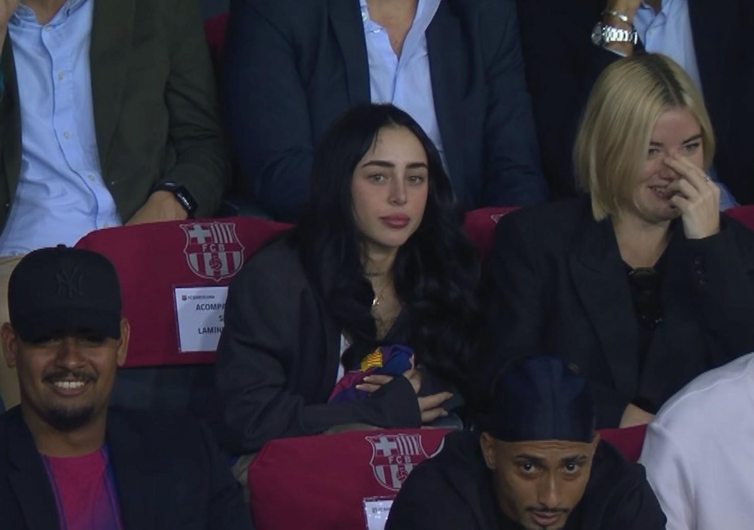 歐冠聯賽階段第三輪,巴塞羅那主場對陣奧林匹亞科斯,亞馬爾在下半場主罰點球后送出飛吻,他的女友在現場見證。
