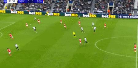 一射一傳助紐卡3-0擊敗本菲卡,安東尼-戈登當選全場最佳
