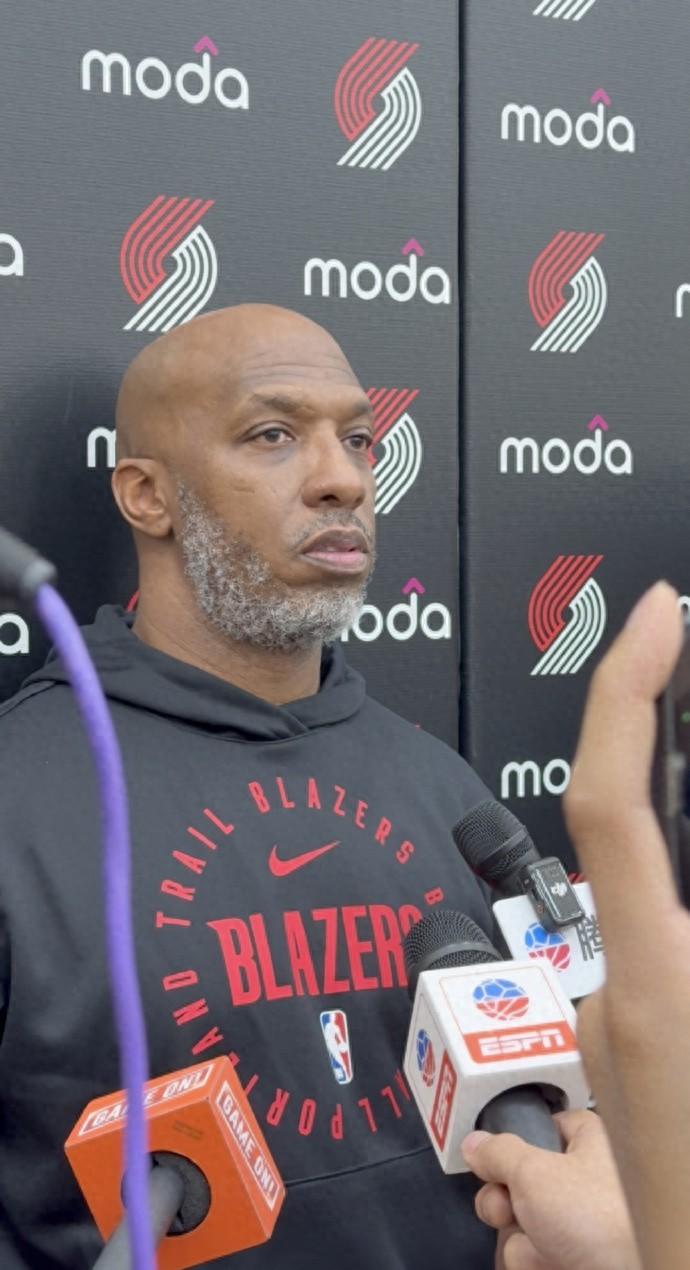 比盧普斯:“我覺得我們隊有七個首發,除了明天的先發陣容(霍勒迪、夏普、阿夫迪亞、卡馬拉、克林根),我們還有亨德森和格蘭特…格蘭特在訓練營中表現得非常有競爭性…但這就是 NBA。”