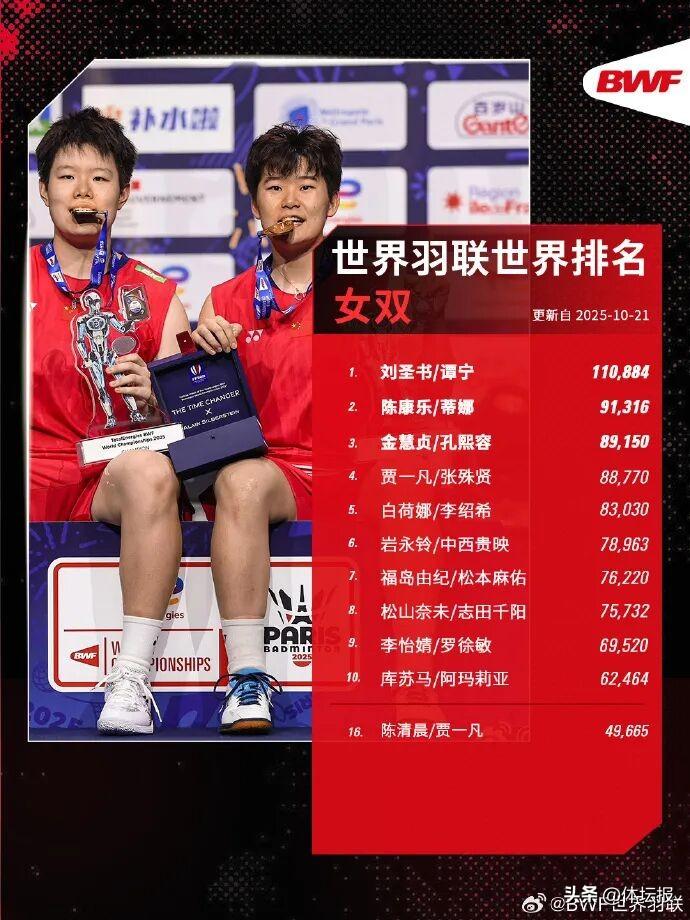 世界羽聯最新排名公佈,國羽拿下三項第一