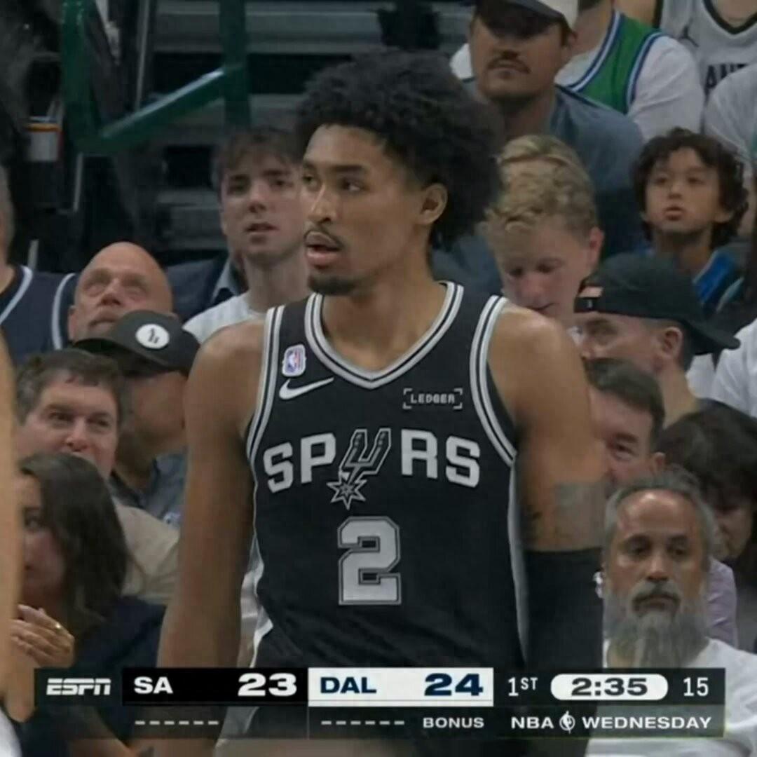 本場比賽,馬刺隊在今年選中的榜眼秀迪倫-哈珀迎來了自己職業生涯的常規賽首秀,全場比賽他替補出場22分41秒,14投7中得到15分4籃板2助攻,三分球2中1,罰球2中0,出現了4次失誤5次犯規,正負值+5。