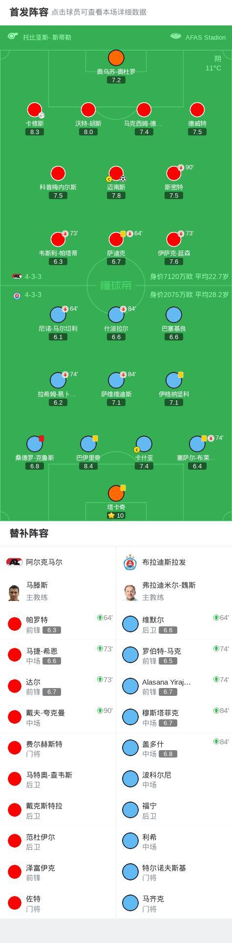 北京時間10月24日歐洲協會聯賽 聯賽階段 第2輪,阿爾克馬爾對陣布拉迪斯拉發。阿爾克馬爾邁南斯破門。最終比分阿爾克馬爾 1-0 布拉迪斯拉發。