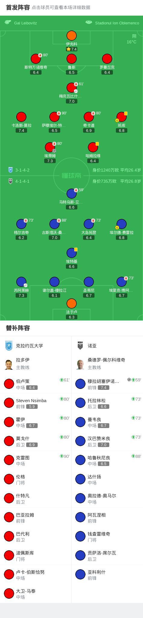 第38分鐘,克拉約瓦大學球員梅克瓦比什維利助攻埃蒂姆打入一球。