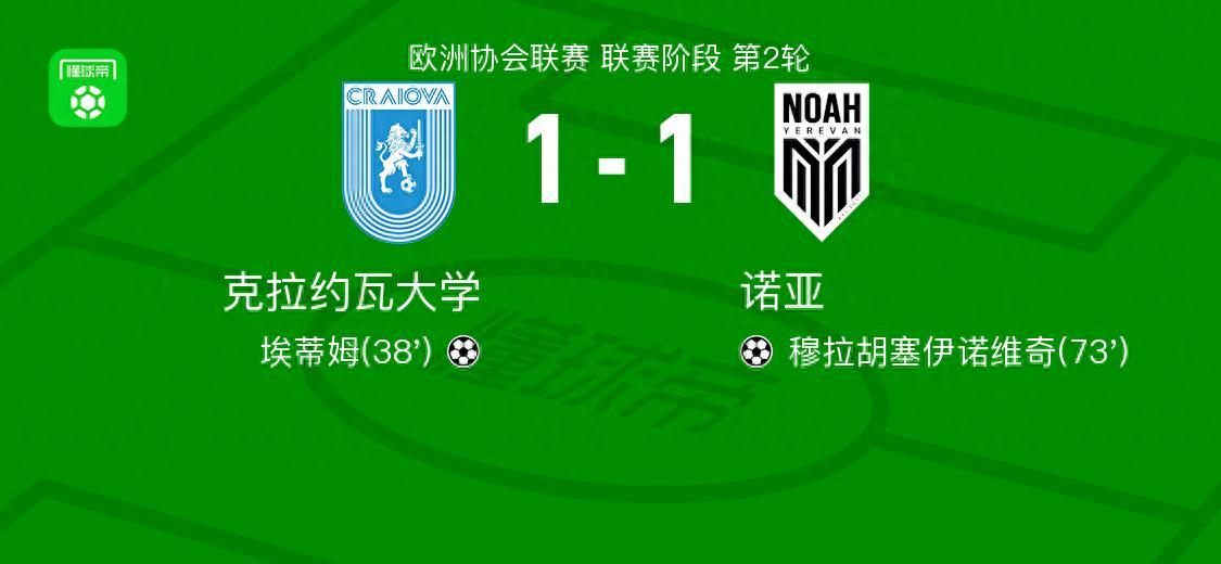 北京時間10月24日,歐洲協會聯賽聯賽階段第二輪展開較量,克拉約瓦大學迎戰諾亞。比賽中,梅克瓦比什維利送出精準助攻,埃蒂姆冷靜施射破門,爲球隊取得領先。隨後,蘇阿萊赫以一次巧妙傳球找到穆拉胡塞伊諾維奇,後者抓住機會扳平比分。最終雙方以1比1握手言和。