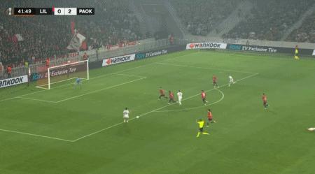 第42分鐘,康斯坦泰利亞斯低射近角再下一城,塞薩洛尼基3-0里爾