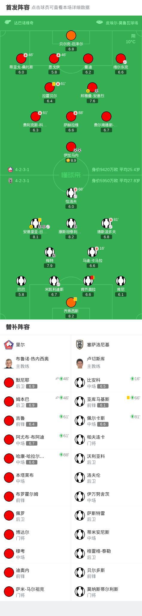 塞薩洛尼基4-3里爾,日夫科維奇雙響+失點,伊加馬內梅開二度
