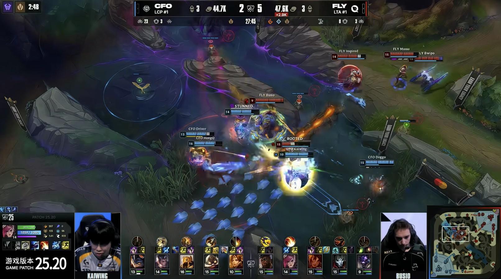 第21分鐘,CFO拿下厄塔汗,但FLY隨後憑藉推塔獲得的經濟取得了3k的領先;