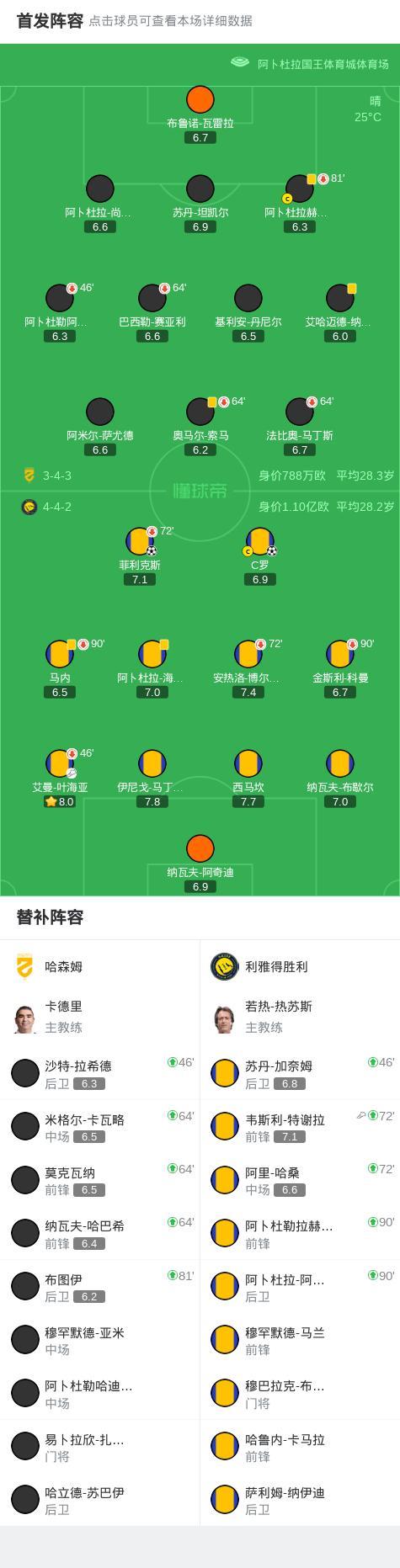 第73分鐘,利雅得勝利換人,菲利克斯被換下