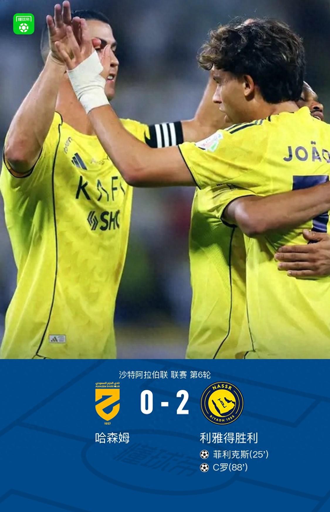 勝利2-0哈森姆豪取10連勝,C羅收穫第950球,菲利克斯破門