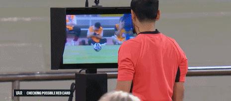 第14分鐘,馬內踩倒對手,主裁觀看VAR後出示黃牌警告