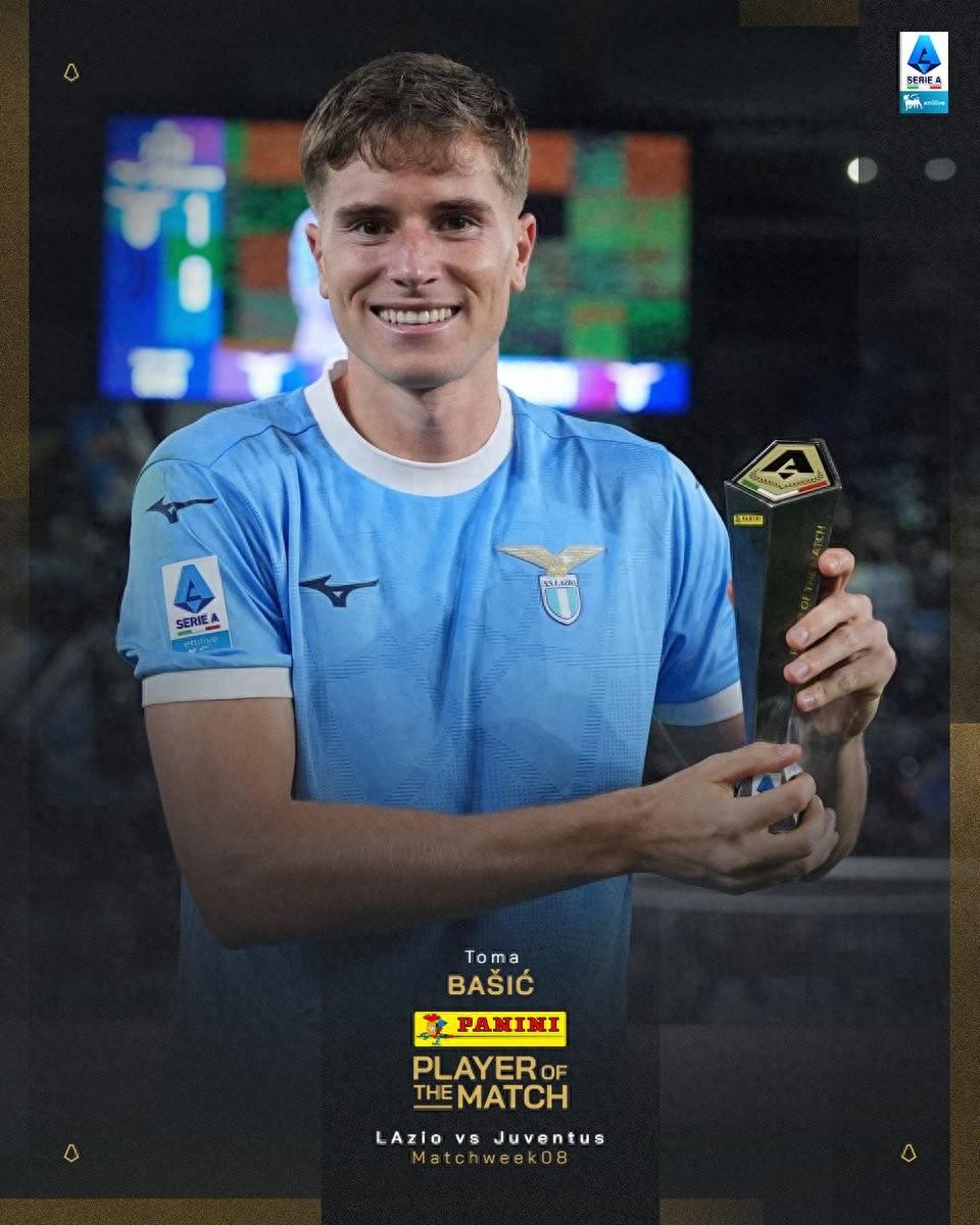 官方消息,托馬-巴希奇當選拉齊奧對陣尤文圖斯一役全場最佳。