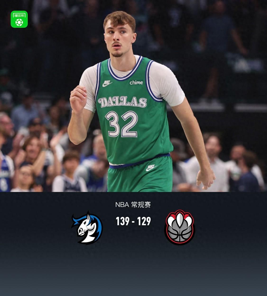 第四節獨行俠PJ-華盛頓拿下9分,猛龍格雷迪-迪克拿下10分,最終獨行俠139-129戰勝猛龍