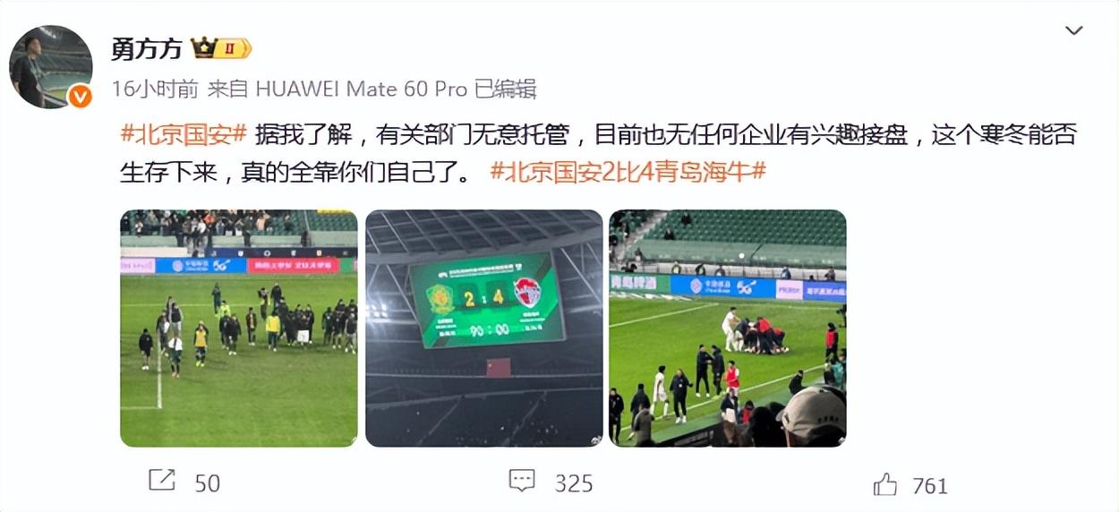 除了競技層面的問題之外,關於國安目前在經營和運營的困境,北京媒體人勇方方在社媒也做了披露:“據我瞭解,有關部門無意託管,目前也無任何企業有興趣接盤,這個寒冬能否生存下來,真的全靠你們自己了。”