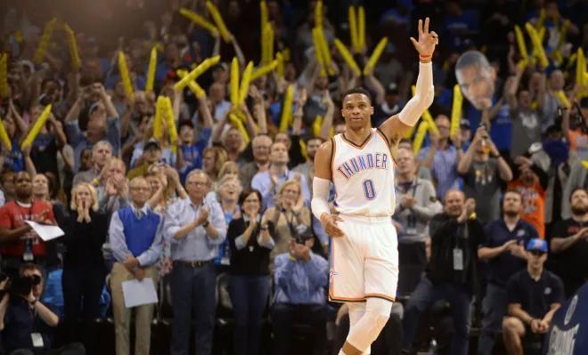 但威少內心的雄獅一直在咆哮,他單方面地拒絕衰老。儘管他在比賽裏已不怎麼扣籃,進攻時教練會把他安排在底角,但只要有機會,或者興致所至,他還是會選擇一些不可理喻的出手。有時候你甚至覺得,這個老傢伙在自絕於這個聯盟。