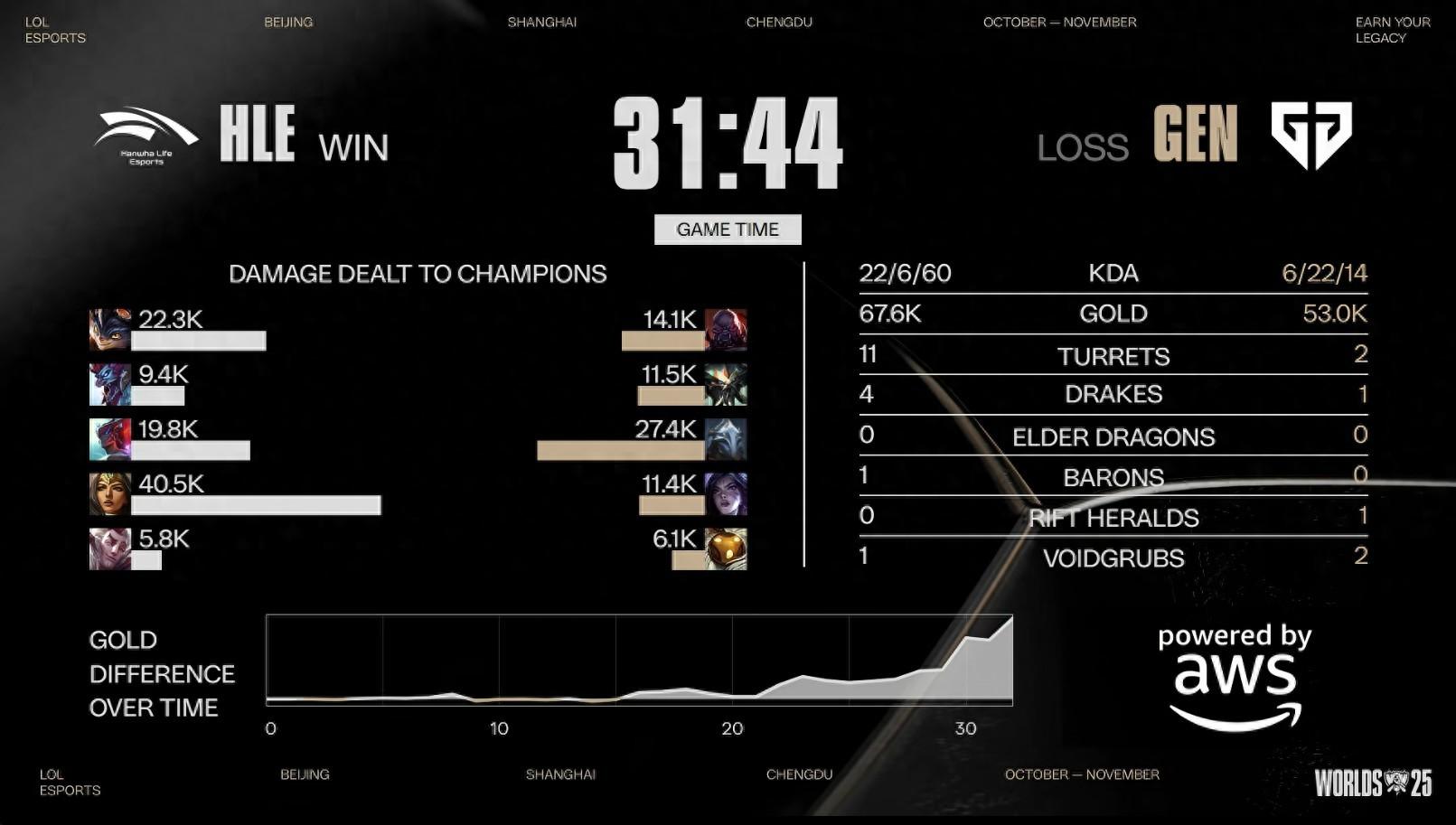 第29分鐘,HLE拿下電龍魂的同時,Zeus蘭博傷害拉滿,GEN被團滅;