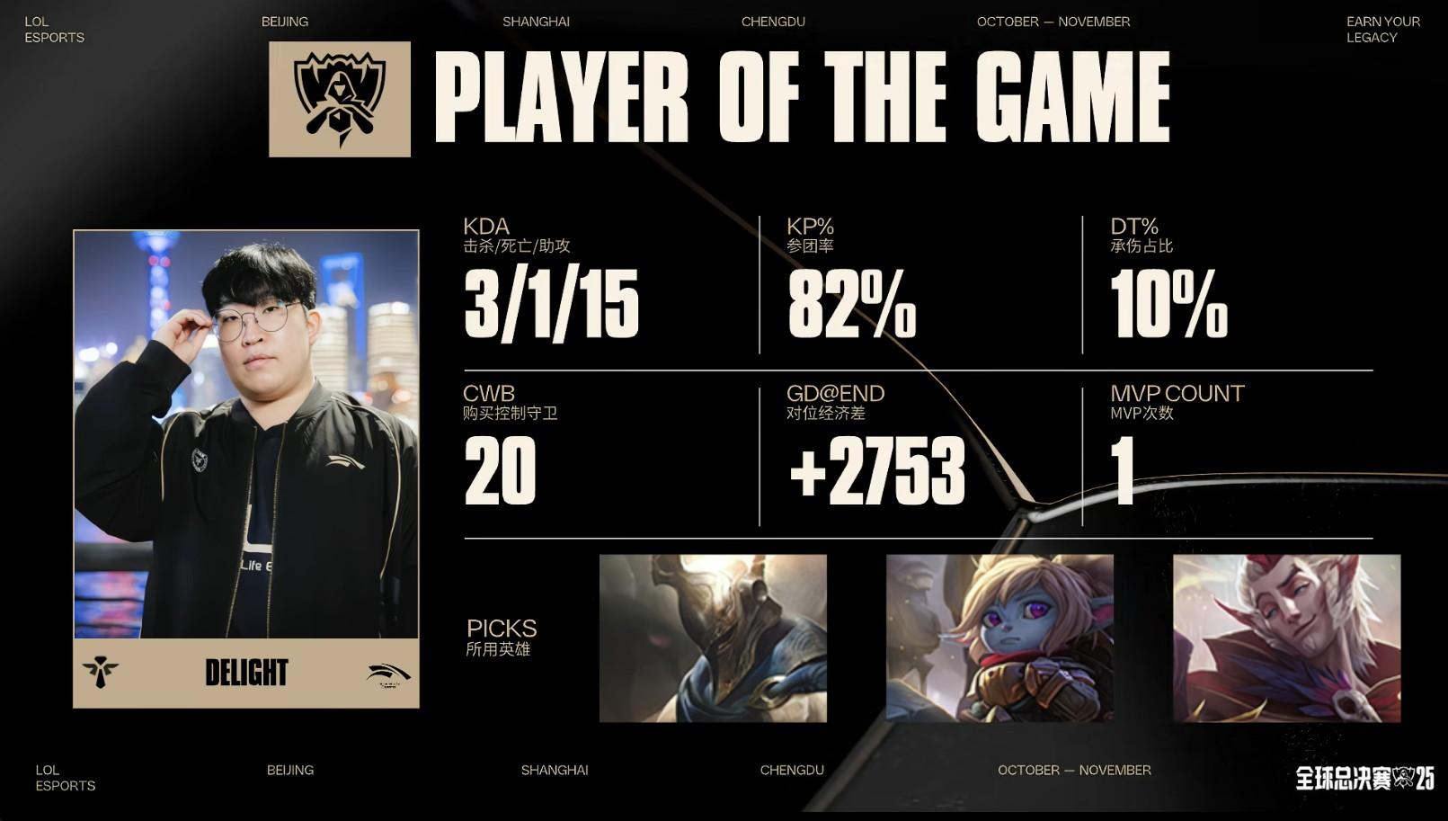 第三局遊戲的MVP給到HLE輔助選手Delight。