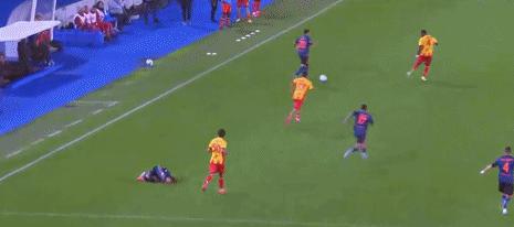 第8分鐘,奧利韋拉被皮耶羅蒂踩倒,前者痛苦倒地