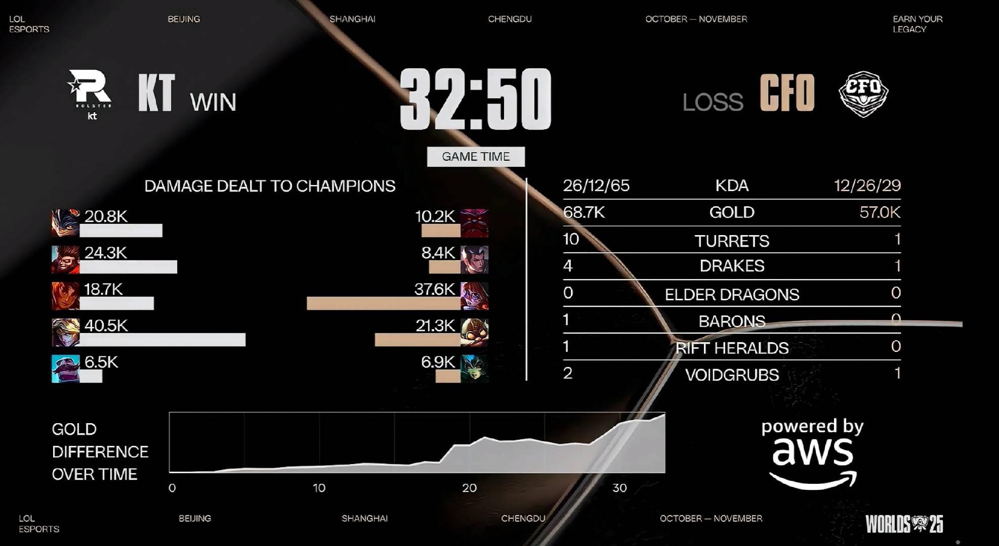 第33分鐘,雖然CFO衝死Bdd巖雀,但Cuzz猴子和Perfect蘭博也切掉了CFO後排,KT一波結束比賽;