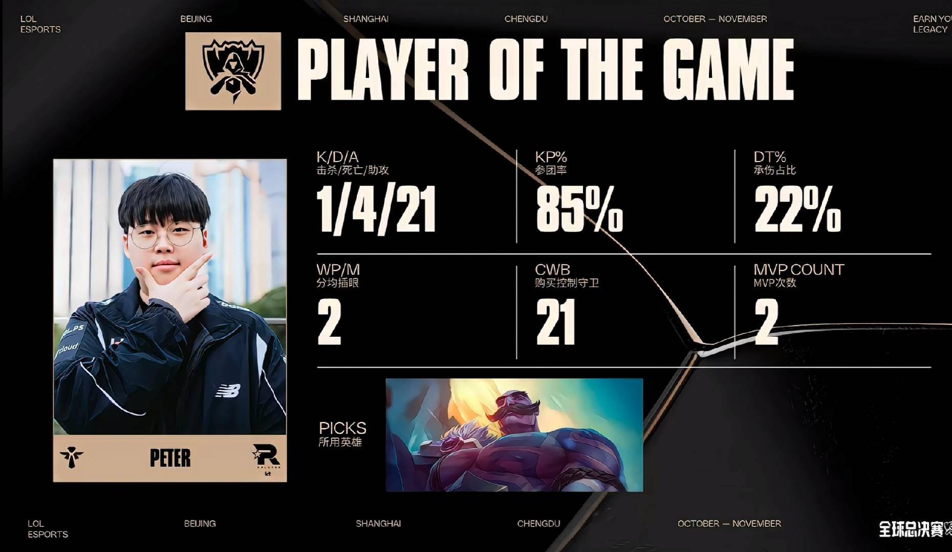 本局MVP給到幫助KT前期建立優勢的輔助Peter!