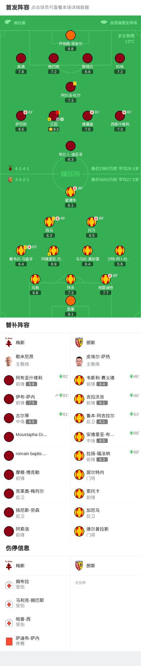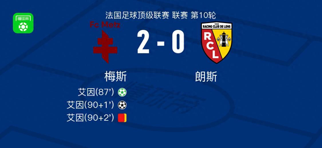 北京時間10月30日法國足球頂級聯賽 聯賽 第10輪,梅斯主場對陣朗斯。梅斯艾因梅開二度。最終比分梅斯 2-0 朗斯。