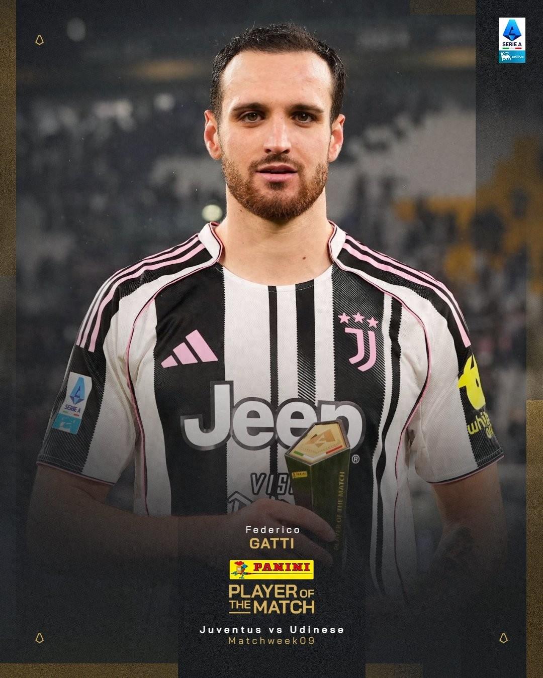 官方消息,費代里科-加蒂當選尤文圖斯對陣烏迪內斯一役全場最佳。