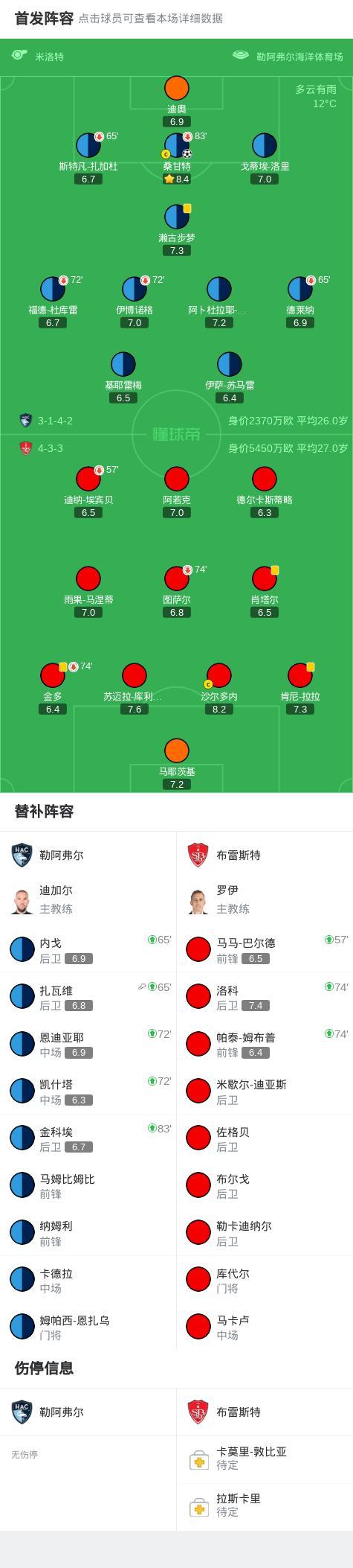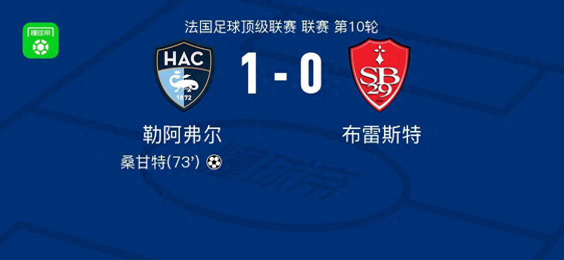 勒阿弗爾1-0佈雷斯特,桑甘特一擊制勝