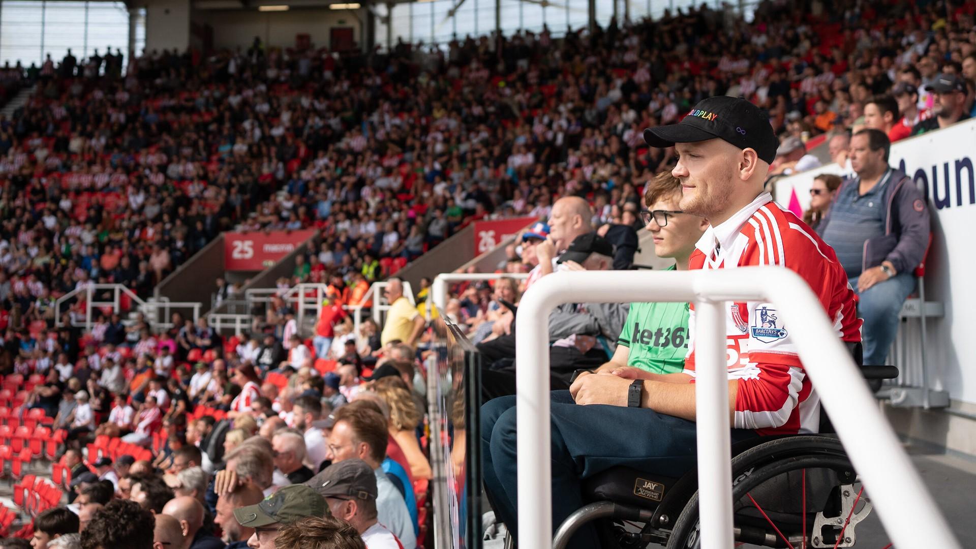 英國殘障球迷權益組織 Level Playing Field2024 年發佈的年度調查顯示,在 受訪的2055 名殘障球迷中,超過 20% 表示“因無障礙問題而放棄去現場”;71% 稱“無障礙狀況”影響了他們到場與離場的決定;其中三分之一因爲“人羣擁擠”和“排隊過長”而受到嚴重影響。另一項面向歐冠和歐聯客場觀衆的調查則顯示,53%的殘障球迷認爲球場“無障礙設施很差”,而 44% 的人指出“通道狹窄”“地面不平”是主要障礙。
