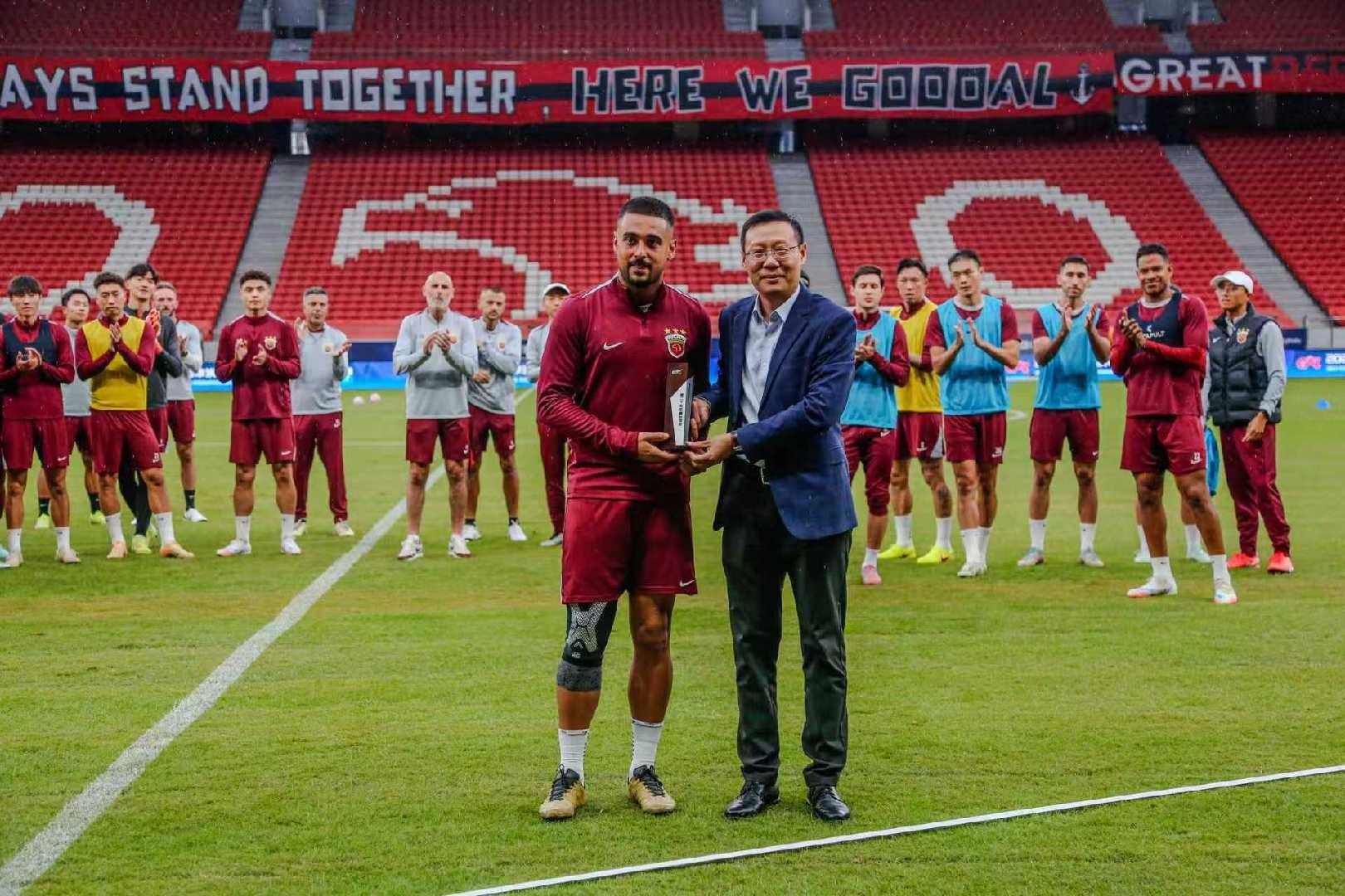訓練開始前,海港俱樂部黨總支書記、總經理沙良昌分別爲萊昂納多頒發中超聯賽第25輪最佳球員獎項,爲李帥頒發百場紀念球衣。