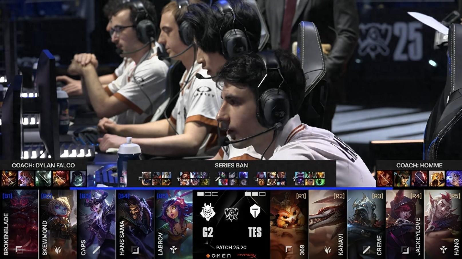 北京時間10月30日,英雄聯盟S15世界賽四分之一決賽,LPL戰隊TES迎戰LEC戰隊G2。第四局遊戲G2鎖下德萊文+辛德拉的雙C。第20分鐘,G2先手動厄塔汗結果被Kanavi7滴血懲下,又被打成0換3。第26分鐘TES再勝一波團戰後拿下大龍,結束遊戲,3-1淘汰G2成功晉級半決賽!