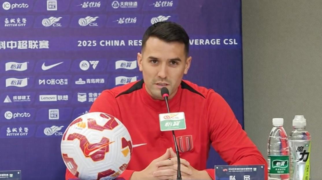 10月30日,成都蓉城對陣河南隊的賽前發佈會,成都隊長周定洋隨徐正源出席。