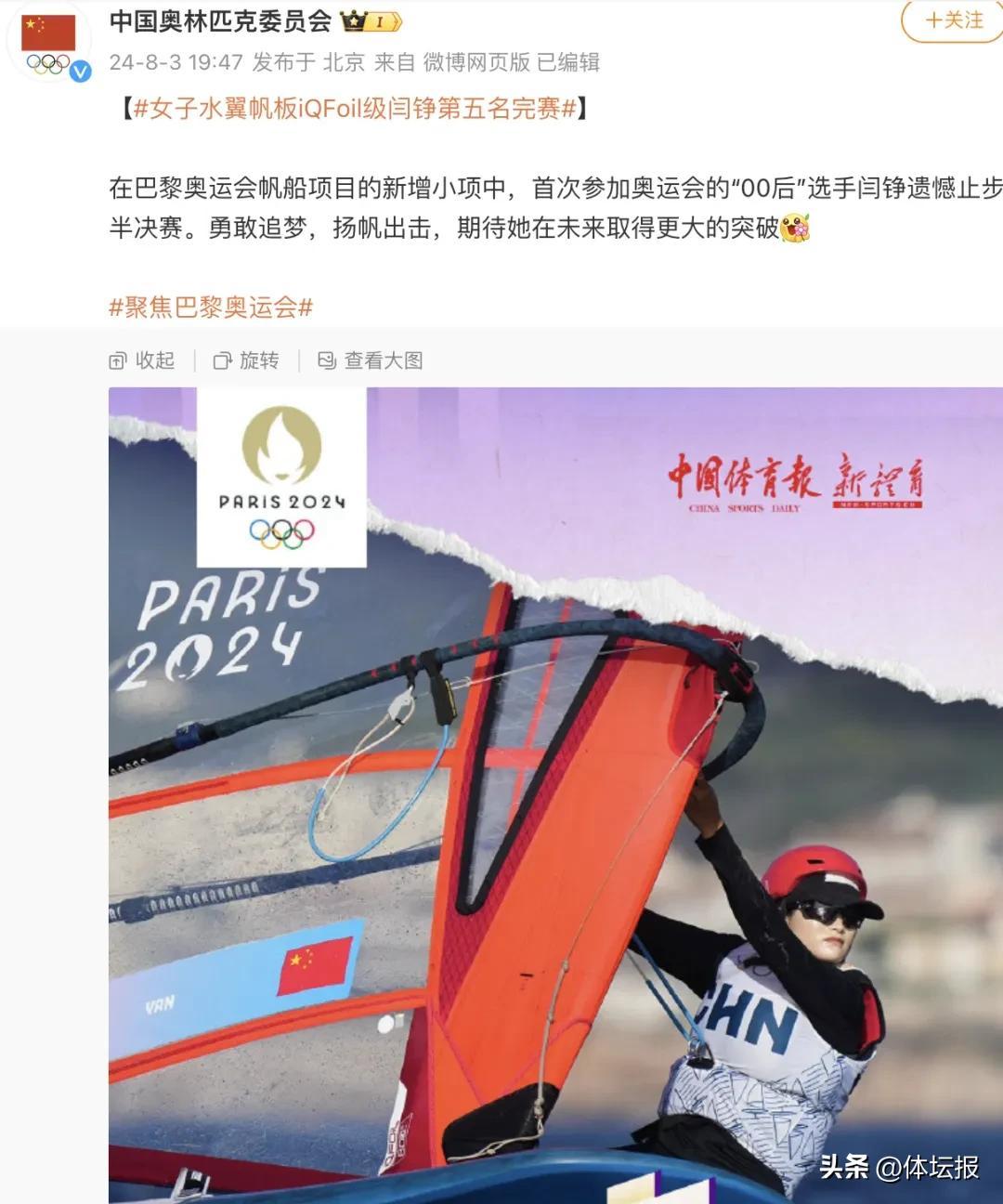 2023年,她的努力開始收穫回報:8月,她在2023世界帆船錦標賽上獲得第8名,爲中國水翼帆板項目拿下2024年巴黎奧運會參賽資格。這是中國帆船帆板隊在新項目上取得的重要突破。