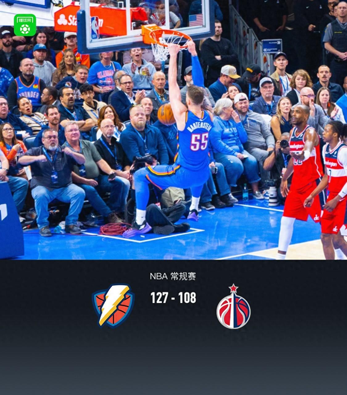 北京時間10月31日NBA 常規賽,俄克拉荷馬雷霆對陣華盛頓奇才。半場雷霆59-49奇才,最終雷霆127-108奇才。