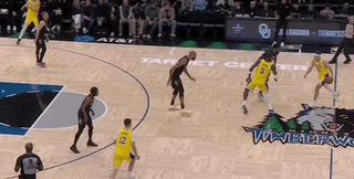 他的擋拆看似平平無奇,實則在過掩護(艾頓的掩護質量有了質的飛躍!)之後有明顯的減速-加速變化,這招在詹姆斯、東契奇和哈登身上都有體現,在森林狼的多人圍捕中,裏夫斯的控運依然穩如泰山,無形中吸引了三人夾擊,輕鬆給拉拉維亞製造機會。