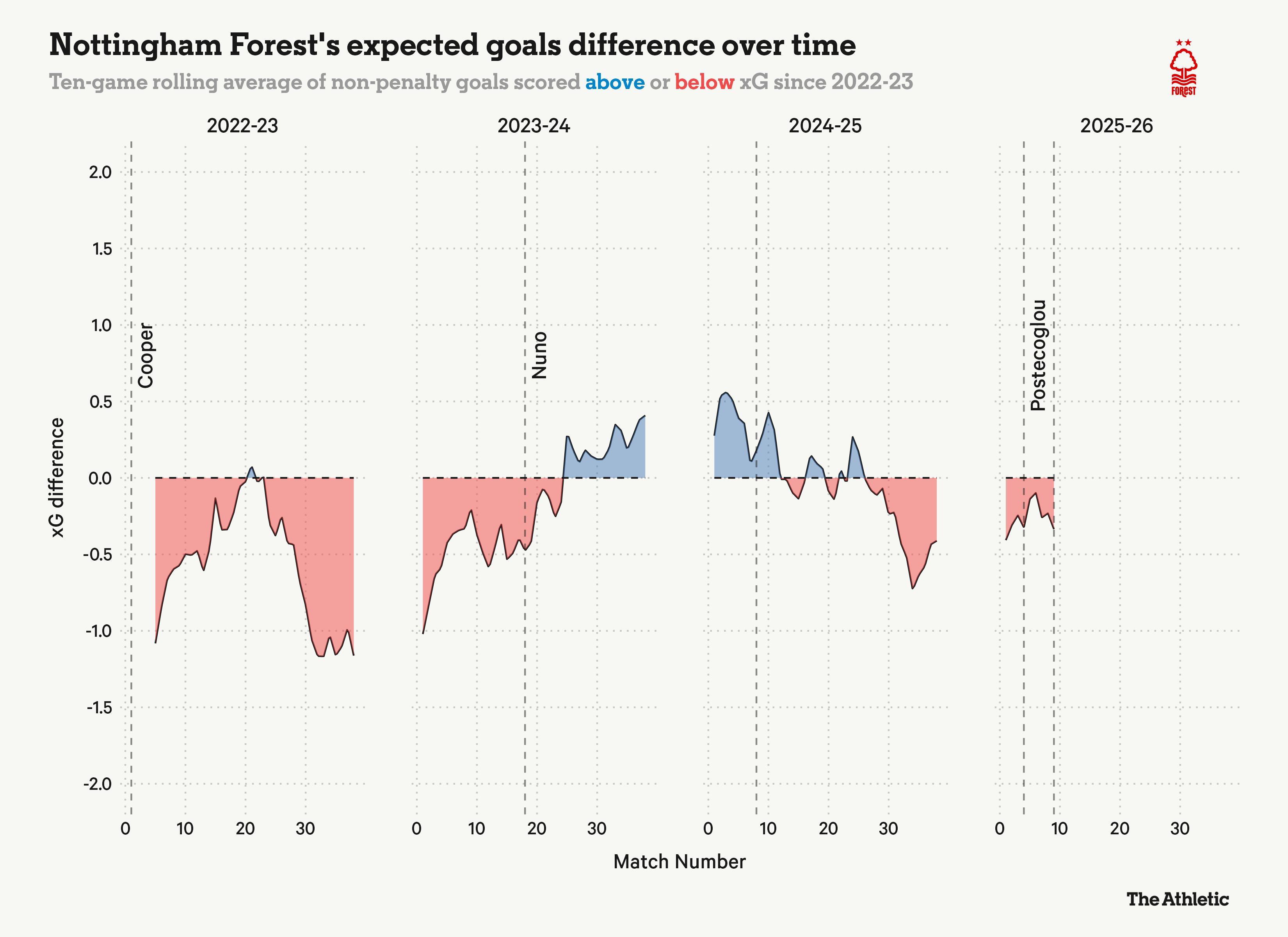 森林上賽季的歐冠資格爭奪因浪費機會而失敗,這種揮霍延續到了新賽季。由克里斯-伍德領銜,森林在2024-25賽季的預期進球超出了聯賽最高的11.4個。重新找回那種精準射門對於他們的保級希望至關重要。