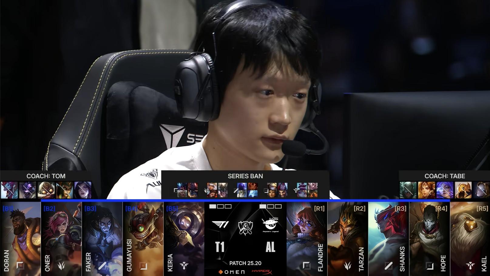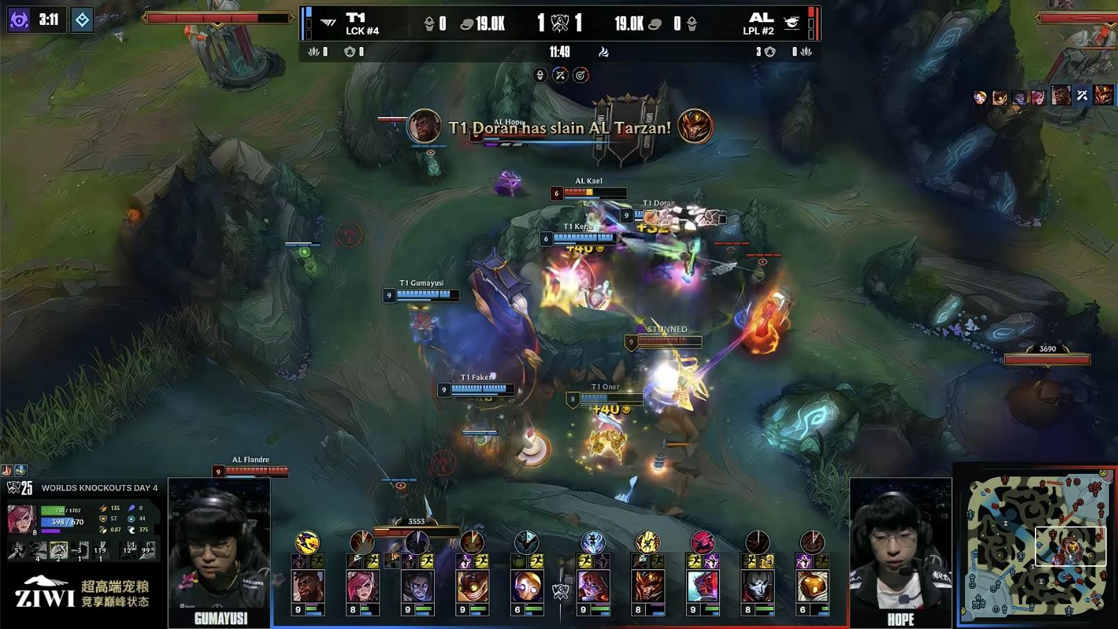 第6分鐘,Faker臉探草叢後逃脫,但Oner在嘗試救援的過程中被抓到,Hope收下本局一血,AL收下第一條小龍;