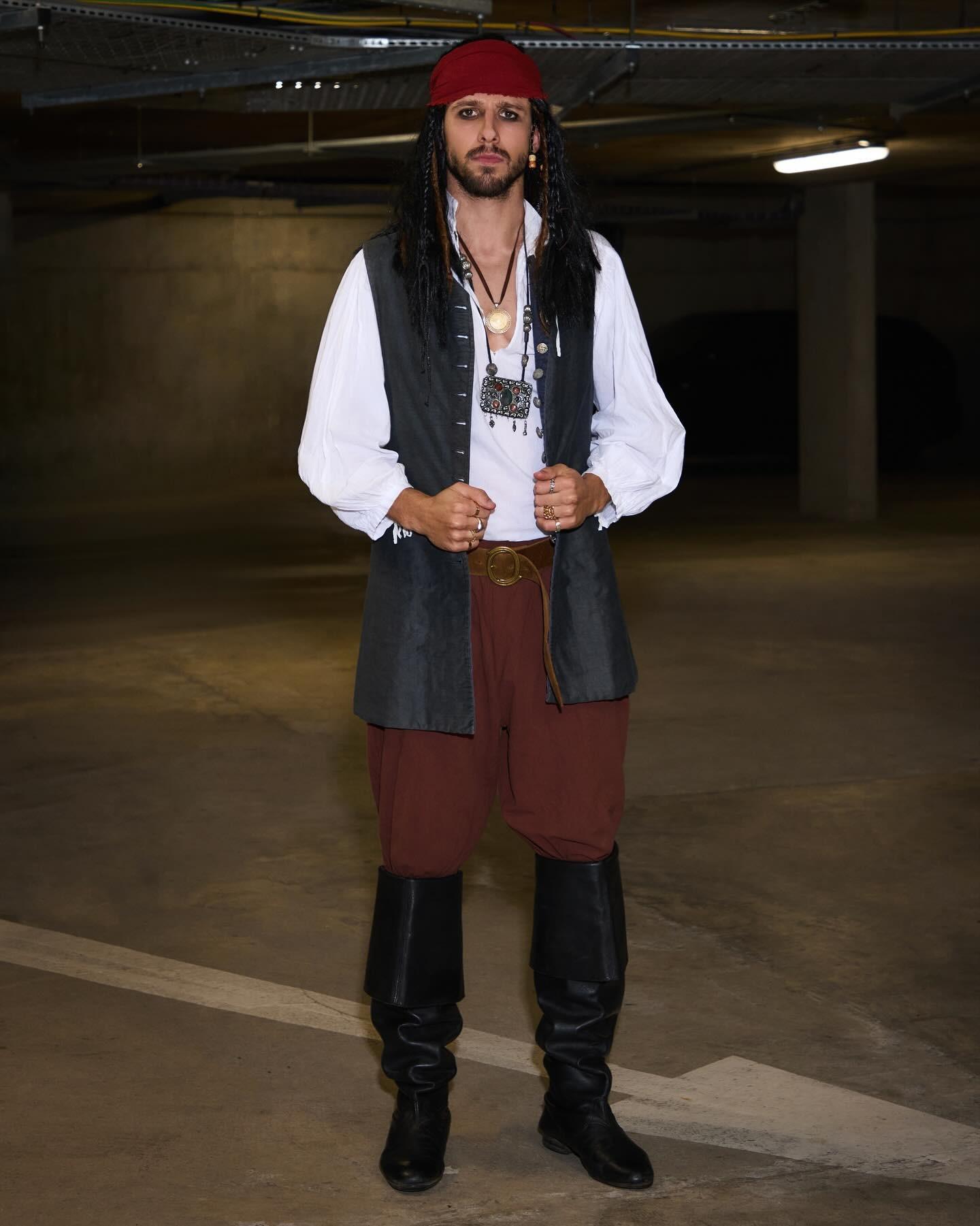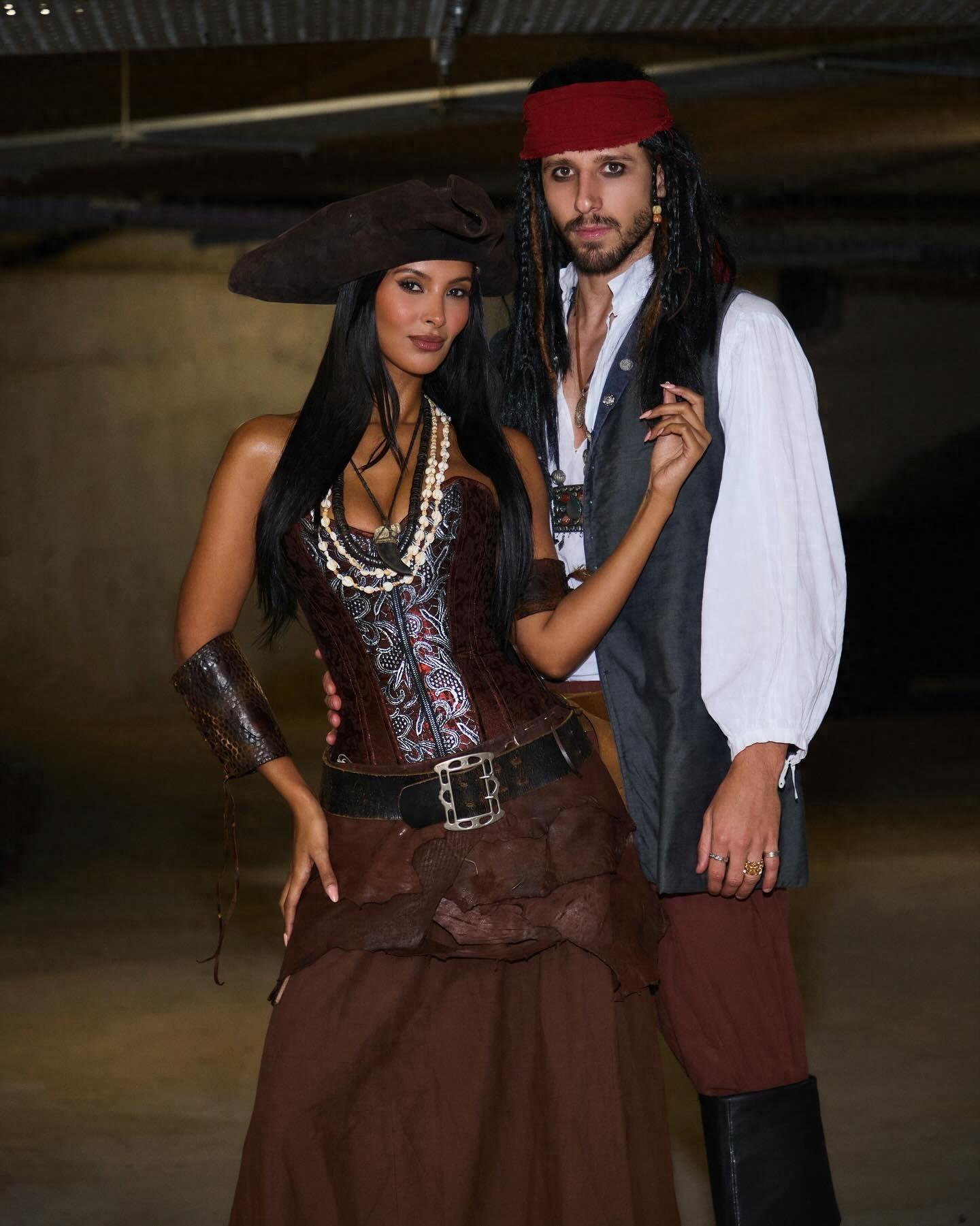 魯本-迪亞斯和女友化身海盜,魯本-迪亞斯的服裝明顯模仿了《加勒比海盜》中的傑克船長。
