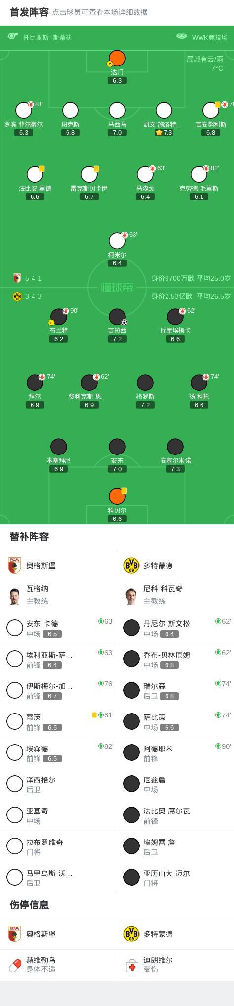 北京時間11月1日,德國足球甲級聯賽第9輪,奧格斯堡坐鎮主場迎戰多特蒙德。上半場,吉拉西推射打破僵局。整場比賽,兩隊總計只有2腳射正。全場比賽結束,多特蒙德客場1-0小勝奧格斯堡,取得各項賽事4連勝。