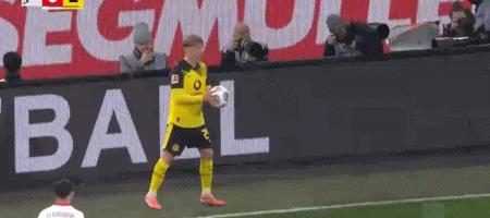 第90分鐘,多特擲出界外球,裁判判罰違例