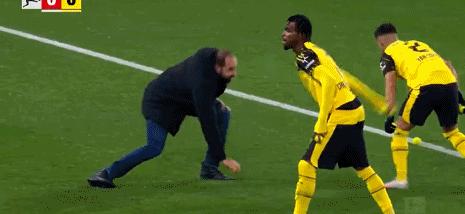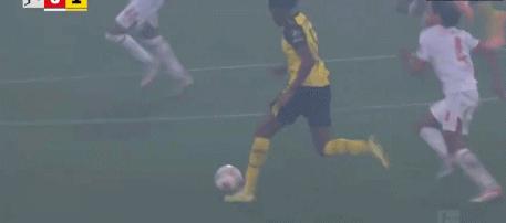 第15分鐘,痛,多特球員出球直接悶倒馬森戈